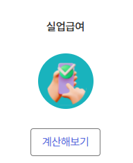 - 모의계산 검색 후 ‘지원금 모의계산’ 메뉴 → ‘실업급여’ 클릭