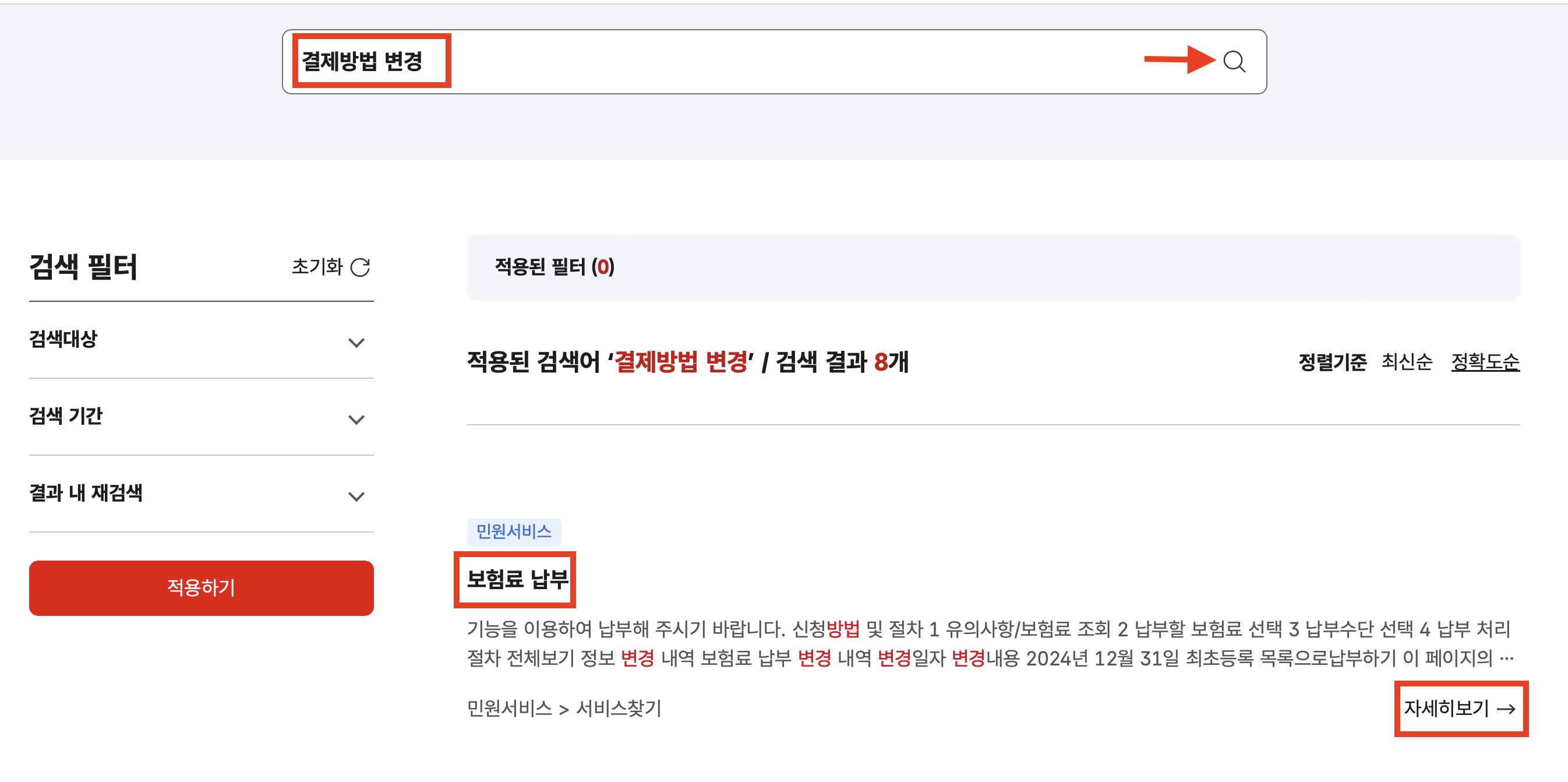 - 미납 요금이 없다면 민원서비스 -> 서비스찾기 -> 자동이체 검색 -> 자동이체 신청